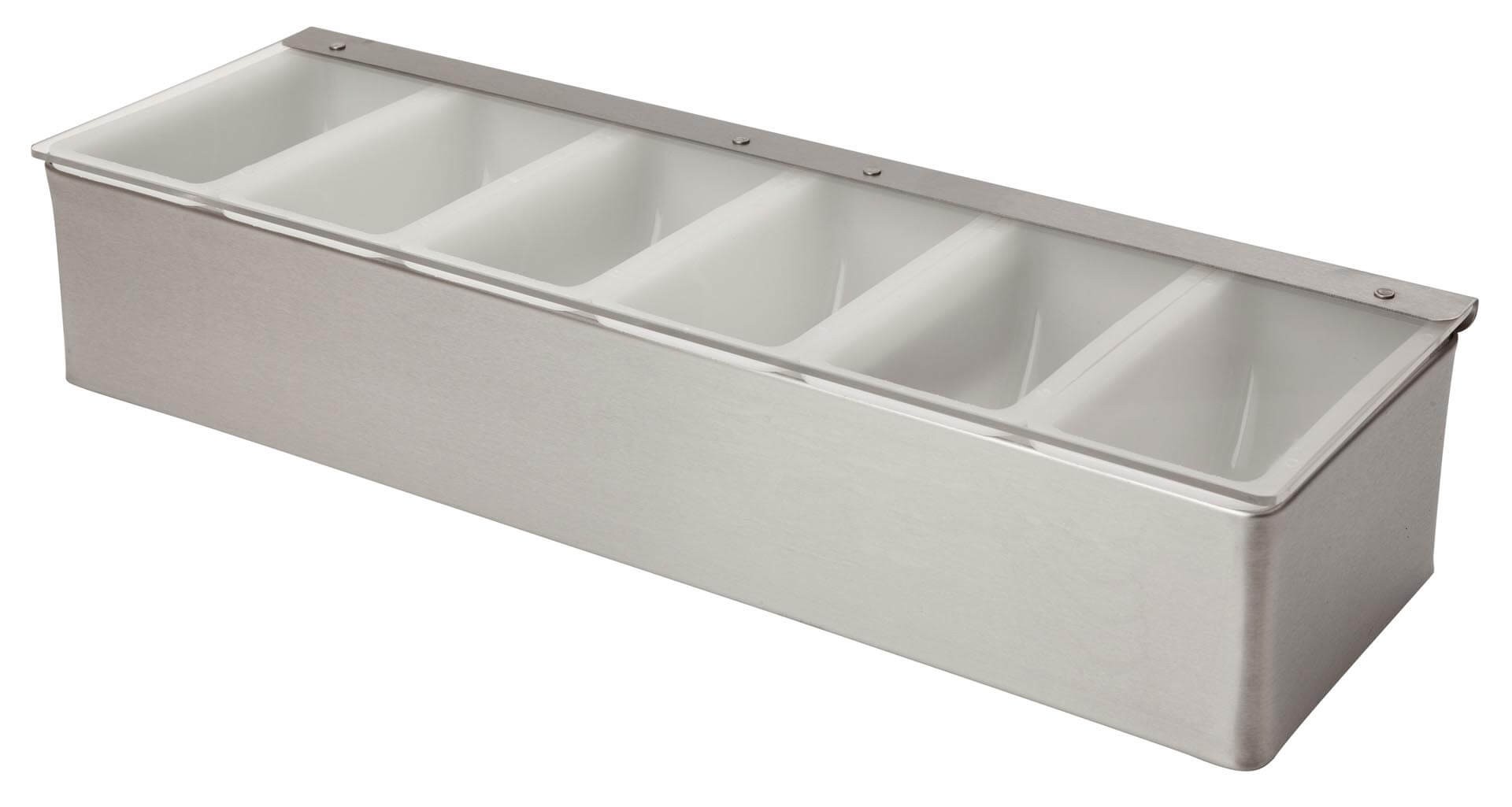Faites le plein de condiments pour cocktails avec ce porte-condiments en acier inoxydable. Ce porte-condiments en six parties vous permet de faire vos provisions avant le service et de rester parfaitement organisé.